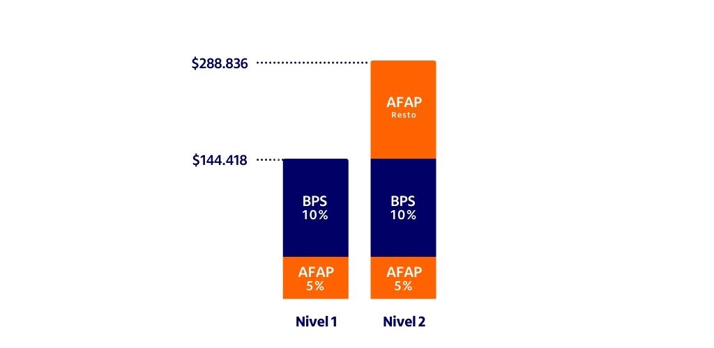 Las personas que ingresen al mercado laboral por primera vez a partir de 1º de diciembre de 2023 van a destinar el 10% de su salario nominal al BPS o la caja que les corresponda y el 5% a la AFAP hasta un salario de $144.418. Si ganan entre $144.419 y $288.836, van a destinar el 10% del primer nivel a BPS y el 15% de la diferencia a su ahorro en AFAP.